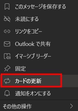 変数の値は送られたメッセージの右上の三点リーダーから"カードの更新"を選択した場合に更新されます。