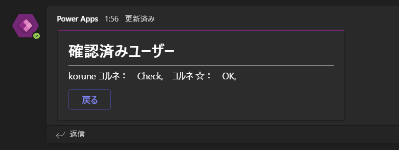 このフローのアクションを利用することで、Power Apps CardsをTeamsに送るときにリンクまで一緒に表示されなくなったのが個人的に大きいですね。