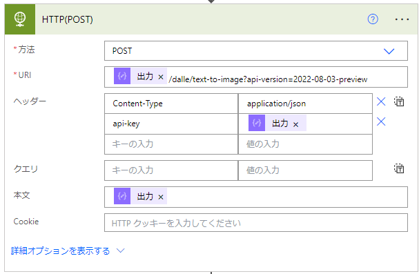続いてPower AutomateからAzure OpenAI ServiceのDALL-Eを呼び出すことで画像の生成を行います。