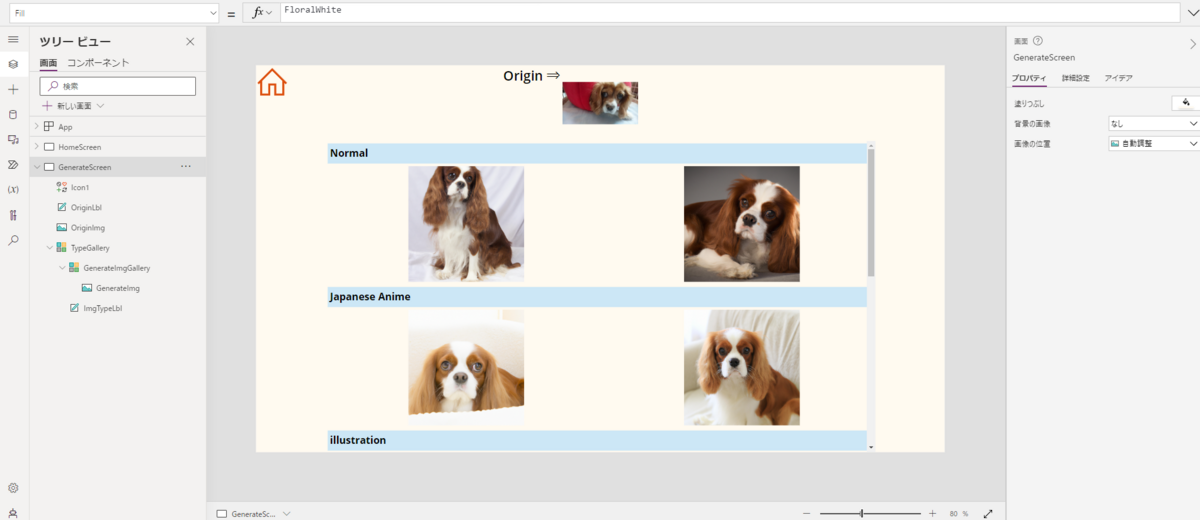 まずはPower Appsから似た画像を生成したい元画像を指定します。