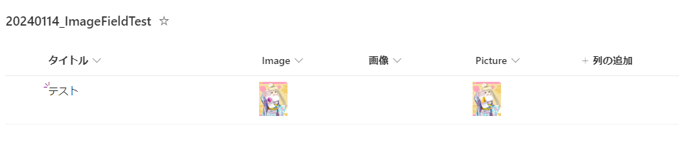 このように、現在(2024/01/14)日本語などの内部名に使用できない名前でフィールドを作成した場合、画像列に画像を登録できないようです。