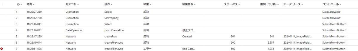 ちなみにPower Apps側でみた場合もこのような感じ。